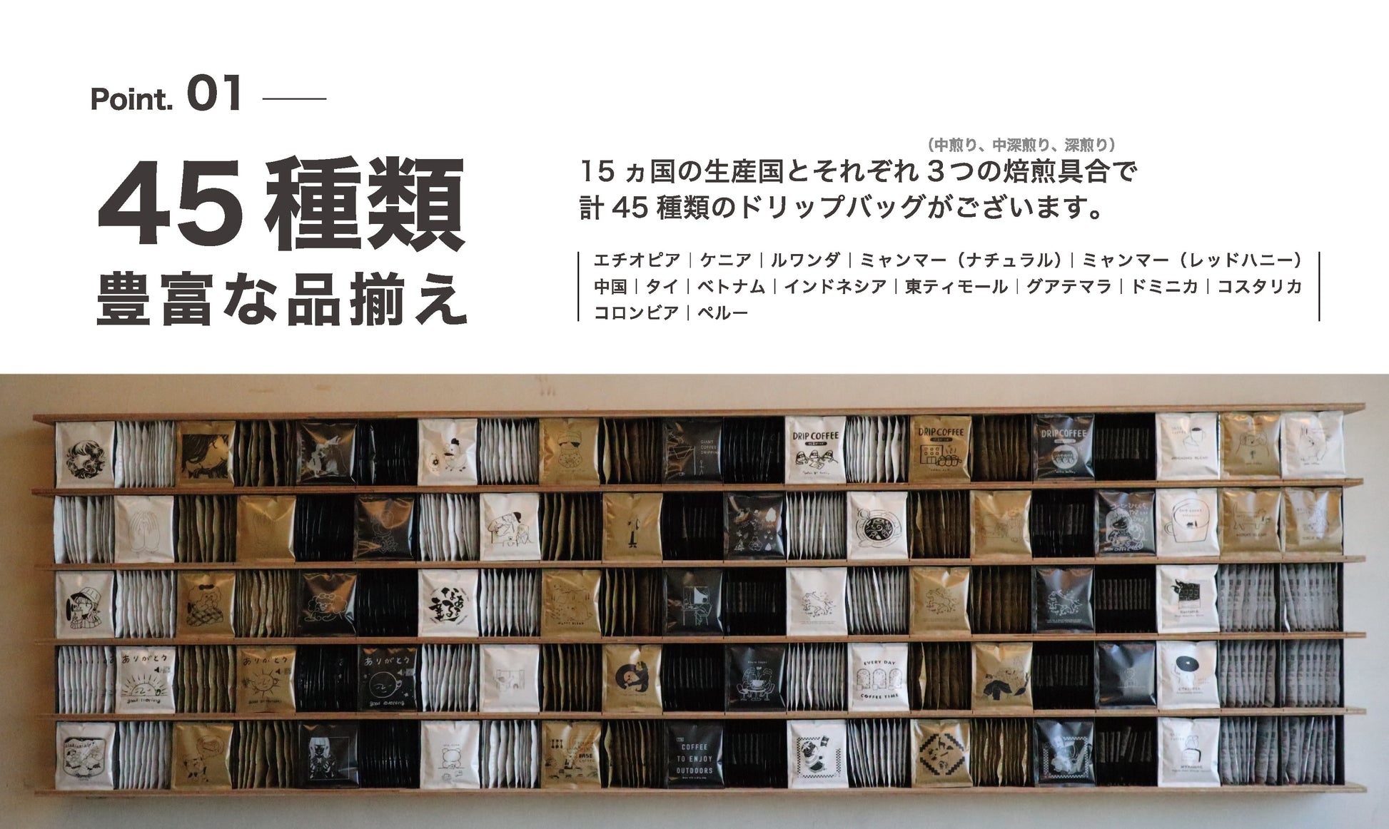 45種を揃えるドリップバッグ専門店は日本中探しても当店のみ(実店舗)