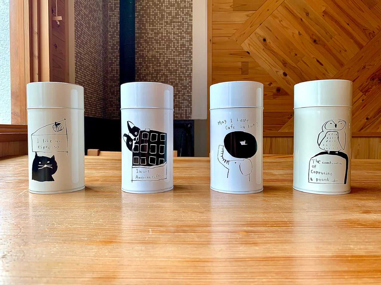 一つ一つ手作りで作られたキャニスター缶に、当店のオリジナルイラストを印刷加工して頂いています。